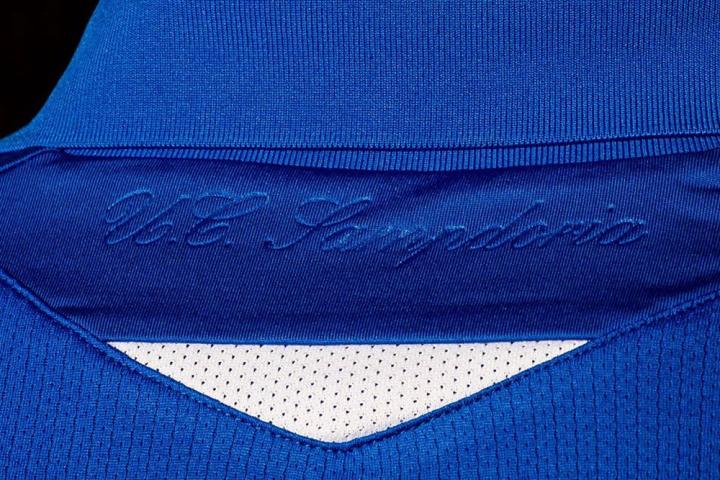 带有四色条纹装饰的罗纹翻领内加入带有“90-91 La nostra favola”(90/91赛季 我们的童话)字样的标签,纪念俱乐部在30年前捧起俱乐部首座也是迄今为止唯一一座意甲联赛冠军奖杯。背后衣领处则加入以浮雕样式呈现的俱乐部名称“U.C. Sampdoria”。主场球衣搭配白色球裤与球袜,球裤和球袜上均加入皇家蓝色细节装饰。