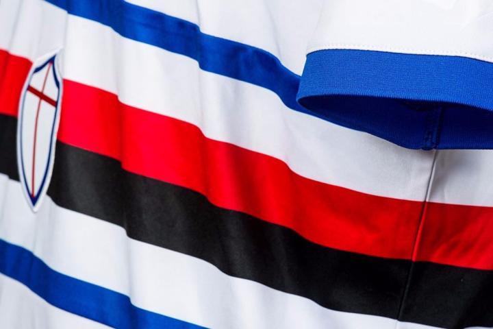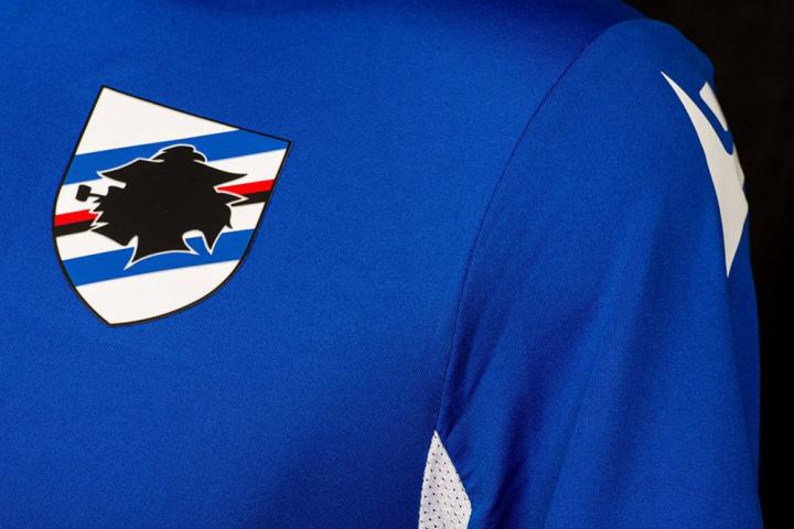 桑普多利亚全新主场球衣以人们熟悉的经典形象亮相,经典的皇家蓝色球衣正中加入经典的蓝白红黑四色横纹,代表俱乐部前身的安德雷亚多利亚与桑普达雷内塞两家俱乐部。四色条纹正中的圣乔治十字徽章则代表球队所在的热那亚市。带有四色条纹与嘴叼烟斗的热那亚渔民“巴奇奇亚”(Baciccia)头像剪影的俱乐部徽章被放置在球衣胸前。