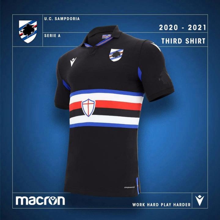 ENJOYZ足球在宣布结成合作伙伴关系后,意大利运动品牌Macron携手桑普多利亚足球俱乐部一同揭晓球队2020/21赛季全新主客场及第二客场球衣。