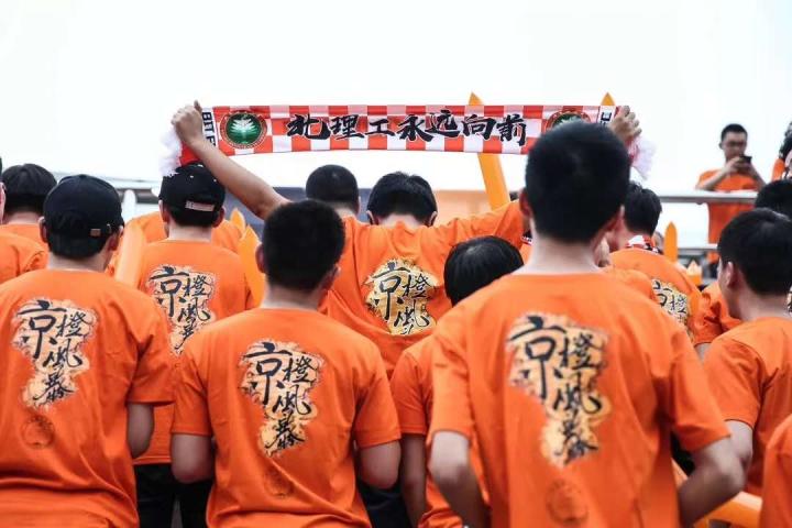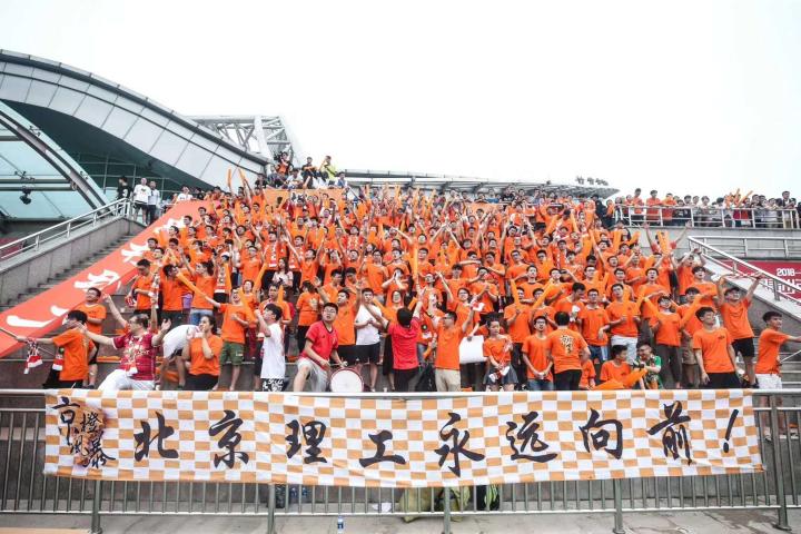 大家都会看球,关注球队,所以会经常到主场看比赛,给球队加油助威。同时,球迷俱乐部也有统一的“队服”和应援口号标语:“北理工永远向前。”