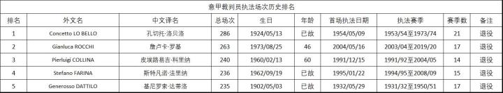 裁判圈意大利当地时间8月1日晚,伴随着尤文与罗马一役的终场哨,即将年满47岁的意大利名哨詹卢卡·罗基(Gianluca Rocchi)的职业生涯画上了圆满的句号。罗基自2004年起执法意甲联赛,至今以主裁判的身份共执法了263场意甲,执法场次排名历史第二位。