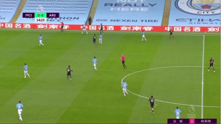 (图)落入阵地防守,曼城依然像首回合一样注重封锁边路,热苏斯对卡瓦哈尔的限制是关键。
