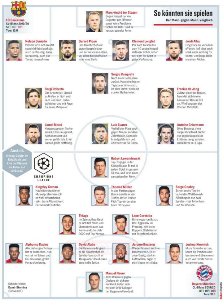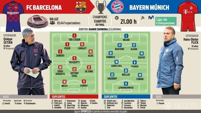 不同于拜仁的固定体系,各路媒体对巴萨本场比赛的首发阵型却有不同预测。