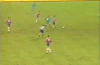 (图)1995-96赛季欧联杯,拜仁球员绍尔面对巴萨完成破门