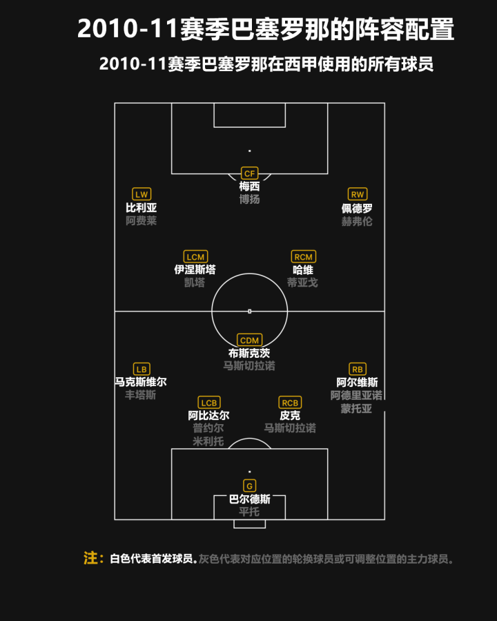 这样的战术令梅西作为伪9号展现出极致的威胁——他既能够大幅度回撤至中场控制好球权,也能够插入至罚球区。他将伪9号的角色展现得淋漓尽致。