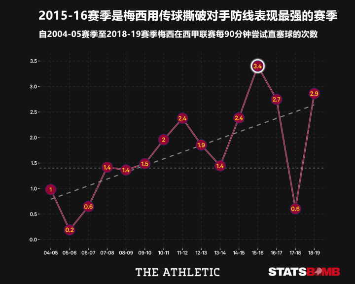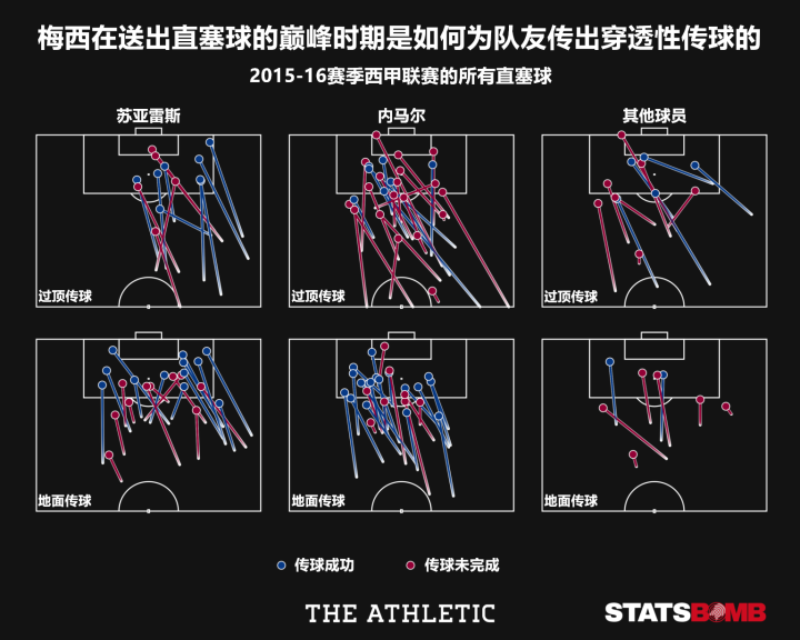 无论怎样,2015-16赛季的梅西在送出直塞球方面无疑达到了巅峰状态。