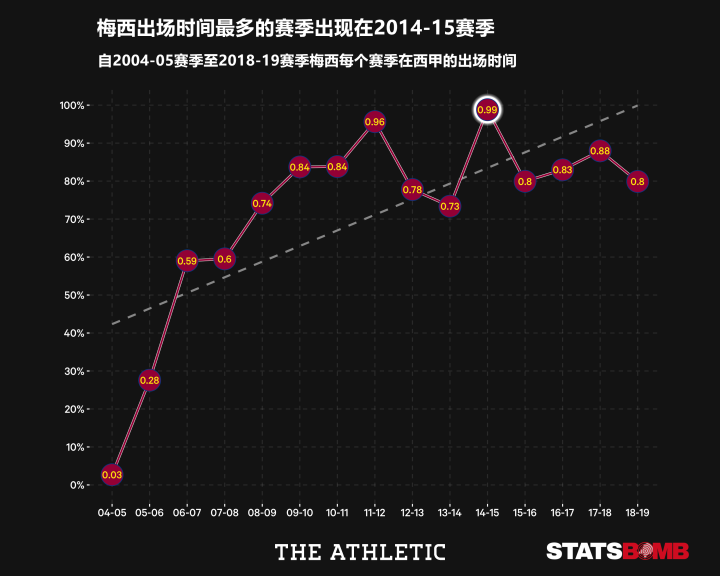 【梅西在出场时间方面的巅峰期是什么时候?】