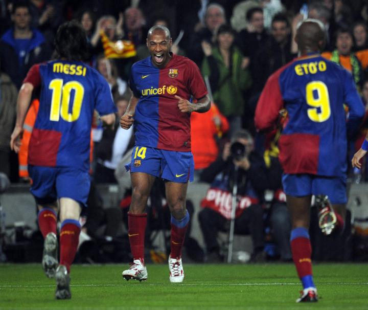 当时的巴萨沿用着433的阵型,埃托奥出任中锋,亨利出现在左边路,哈维及伊涅斯塔则占据着中场的位置。2009年4月,在、球队主场对阵拜仁的欧冠1/4决赛首回合比赛可谓梅西的一大代表作——球队的三名前锋均有建树(梅西完成了梅开二度),最终帮助球队4-0大胜对手。