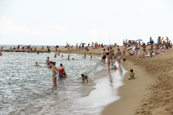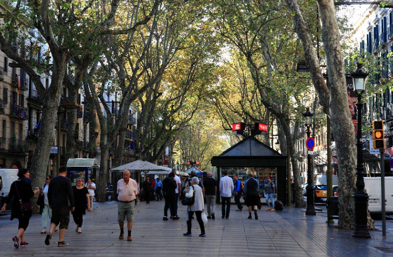 我们到访巴塞罗那的时候是七月盛夏,地中海的夏天虽然少雨,南欧的阳光也着实耀眼,但街头随处可见的绿荫,还有地中海吹来的阵阵海风,却会让这个海滨城市显得有些清爽宜人。从高迪的圣家族大教堂出来,已经过了午后的催眠时分,走过著名的加泰罗尼亚广场,慵懒地沿着大名鼎鼎的兰布拉大道一路逛去,两边是商店,中间是宽敞的步行街,一家家街头小店、一间间小酒馆,还有路中央的蔬菜瓜果和手工艺品的市集,以及各路大显身手的行为艺人,让人目不暇接。一路走下去,就是地中海蔚蓝的海边,那里矗立着高耸入云的哥伦布纪念柱。再往下走,沿着海滩漫步下去,当地人三三两两聚集在沙滩上,好不惬意。