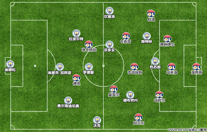 拥有跑动和传射能力极强的德布劳内居中调度,对攻战原本是曼城奠定胜局的大好机会。令人遗憾的是,阵型首尾两端的曼城球员没能拿出与身价对等的表现。在穆萨-登贝莱梅开二度之前,热苏斯和斯特林相继错失良机。继上赛季次回合对阵热刺,以及不久前足总杯输给阿森纳的比赛之后,拉波尔特再次在关键战中出现致命失误,而埃德松的扑球脱手直接葬送了曼城的晋级希望。