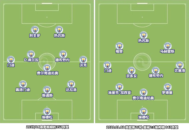 (图)本赛季中期,瓜迪奥拉重启了三中卫试验,但仅用了一场便将其搁置。同对阵埃弗顿时的布阵相比,解放德布劳内的调整并没有取得预期的效果。