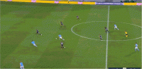 上半场后半段,里昂的体能进入了一个瓶颈期,瓜迪奥拉调整了锋线球员的位置,来到左路的德布劳内多次为斯特林送出妙传,曼城的进攻开始起势。易边后,瓜迪奥拉换上马赫雷斯变阵433,曼城在前场形成压制,连续制造出机会。