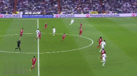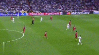 皇马在首回合打入的那一个进球便来自于C罗回撤之后的组织调度。如图所示,C罗回撤到中场区域后,拜仁慕尼黑防线的右路便出现了短时间内的身后空档。当C罗以直塞的方式将皮球交给高速插上的法比奥·科恩特朗时,后者可以利用自身的速度优势摆脱拜仁防守球员,随后助攻中路包抄的本泽马破门。这一粒进球既展现出皇马擅长的快速边中结合,也暴露出瓜迪奥拉球队的一大漏洞:身后空档过大。
