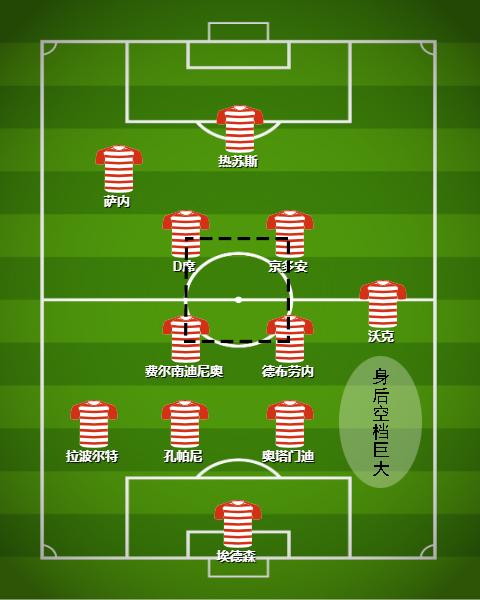 而曼城靠近右路的那一名后腰是更加偏向于进攻的德布劳内,如果让这位比利时球星大幅度的参与到防守无疑会浪费其进攻天赋。