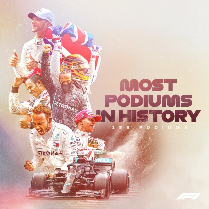 这同时也是汉密尔顿的156个领奖台,他也超越了舒马赫成为F1历史上登上领奖台次数最多的选手。