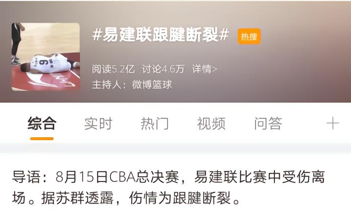 2013年科比跟腱断裂、2019年杜兰特跟腱断裂、加上15日易建联跟腱断裂,这已经是篮球迷在比赛直播中看到的第三次悲剧了,一时间#运动员跟腱断裂意味着什么#登上了微博热搜,引起球迷们的广泛讨论。