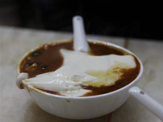 开封人还喜欢一种喝法,胡辣汤和豆腐脑混在一起,俗名“两掺”。