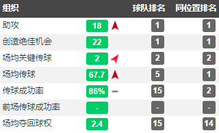 除了在进攻方面为球队带来的直接帮助,阿尔维斯作为一名边后卫还有着堪称顶级中场的组织能力。他在当赛季西甲联赛中的场均关键传球数达到了1.9次,排名所有同位置球员中的第1位。与此同时,他的场均传球数也达到了惊人的72.4次,排名同位置所有球员中的第1位。
