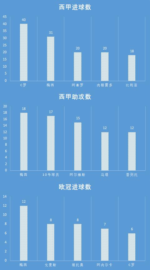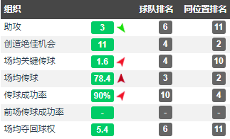当梅西离开中锋位置后,巴塞罗那并不会因此缺失了足够的包抄接应人。无论是左边锋位置的比利亚还是右边锋位置的佩德罗都会适时内收至中路参与抢点。正是在这样的背景环境之下,那个赛季的梅西逐渐展现出作为一名顶尖中场组织者的实力。在38场西甲联赛中,梅西一共贡献了18次助攻,排名全联盟第一。与此同时,这位阿根廷巨星一共创造了22次绝佳机会,排名全联盟第1;场均关键传球达到2次,排名全联盟第2;场均传球数达到67.7次,排名全联盟第1。