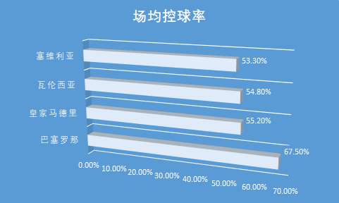 传控二字似乎已经深入了巴塞罗那的骨髓,在2010~2011赛季,红蓝军团在西甲联赛中的场均控球率达到了惊人的67.5%,排名全联盟第一,远远高于55.2%的皇家马德里、54.8%的瓦伦西亚以及53.3%的塞维利亚。与此同时,如此高昂的控球率放眼于整个欧洲足坛都是绝无仅有的,即便在一枝独秀的德甲联赛以及法甲联赛,拜仁慕尼黑和大巴黎都没有能够展现出如此高昂的皮球控制力。