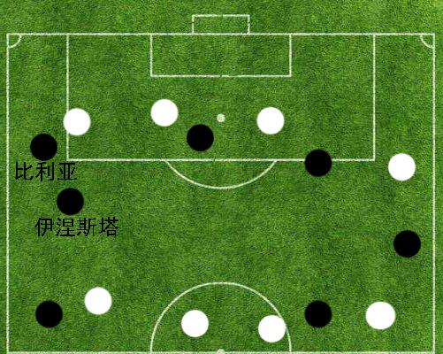 与此同时,梅西在伊涅斯塔拿球时也会主动靠近左路,以图可以和后者展开熟悉的小范围快速传递。由于中路缺乏包抄人,此时的伊涅斯塔并不会像往常一样和比利亚打出下底传中配合,而是会等待梅西的拉边,以内切渗透的方式将皮球输送到对方的防守腹地之中。这一时期伊涅斯塔的直塞球能力可以得到完美的体现,他往往可以在2~3人的包夹防守下寻觅到对方防线漏洞,从而用1~2脚直塞传递径直撕裂对方防线。