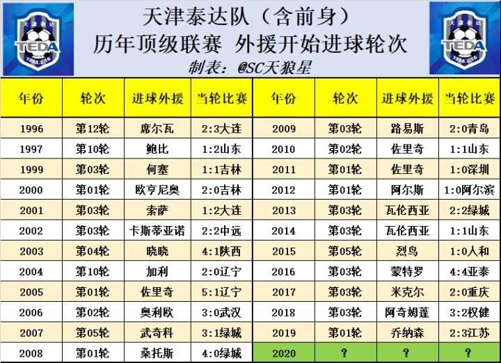 上一次泰达队前五轮,外援没有进球,还是追溯到遥远的2004中超元年。