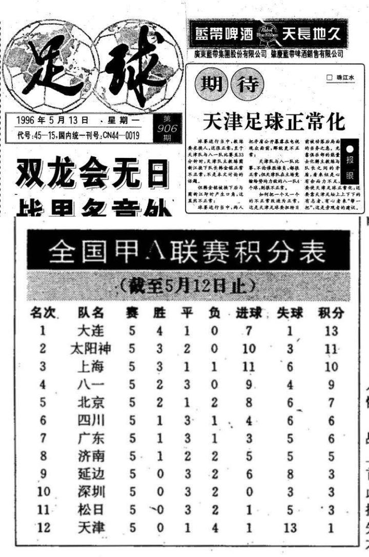 今年前五轮,进球不多,失球不少,一平四负,失13球。