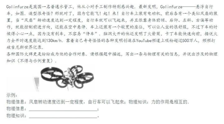而这个飞行摩托,也偶然让柯林火到了国内。如果你打开学生们的物理试卷,很有可能遇到这道题。