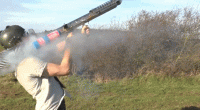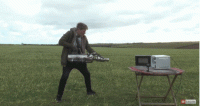 比如说这个手炮,炮弹是土豆,至于威力,你看看那个无辜的微波炉就知道了。