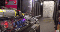 接着进行推力测试,上边的白色油桶中装着特定重量的液体,测试引擎是否能产生足够的推力。