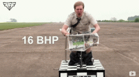 一辆勉强容纳成年人的卡丁车,经柯林改造后,增添了一个大型发动机,时速61英里,排气管已经烧得通红,老哥根本不怕发动机炸缸。