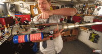 简单介绍下这门炮管。蓝色瓶子是动力源,里面似乎是某种气体燃料(gas);气体燃料通过节流阀顺着铜管输入炮膛后被风扇混匀,开关放电,气体燃料产生动力,推动“炮弹”发射。