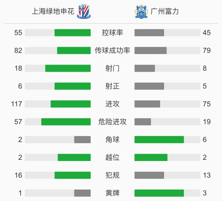 最终全场比赛结束,上海绿地申花2-3广州富力。