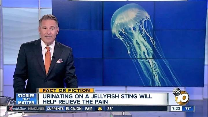 因此,尽管让身边的朋友朝你发射橙黄色的液体非常尴尬和怪异,但对付水母蜇伤,尿液总是浓的好。