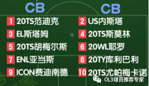 中后卫首选范迪克。20TS最强中卫,也是目前全游戏的第一中卫。193cm的身高和92kg的体重堪称完美中卫模板。身体对抗方面没的说,几乎没有任何中锋能在范迪克身上占到便宜。范迪克这么高大,速度还那么快,这是非常离谱的。而且这么快就算了,灵活转身还能这么快。不仅如此,范迪克的防守可以说是非常稳健的,极高的AI让他拥有极好的防守位置感,经常能出现在关键的位置将球破坏。高空球能力就更别说了,193的身高再配合上超强的弹跳,再加上对高空球落点的精准预判,可以说是彻头彻尾的空霸。真正的完美无瑕的中卫——范迪克!