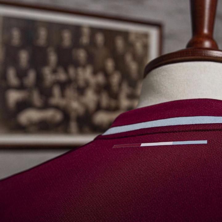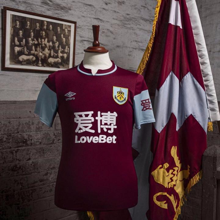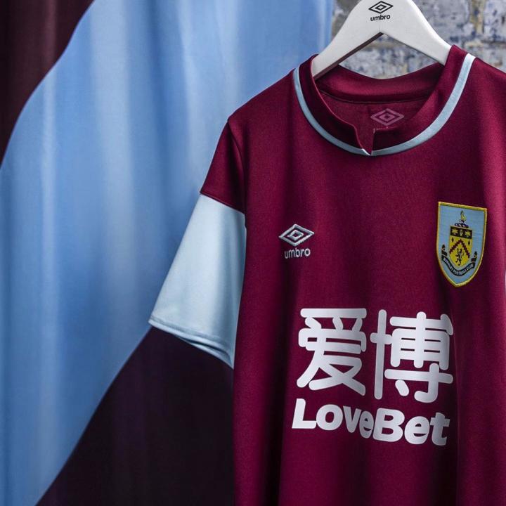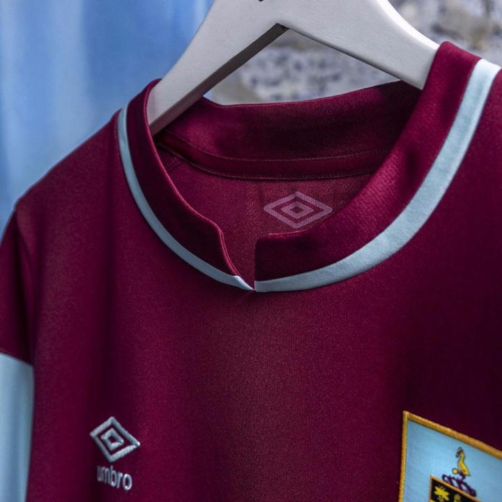 伯恩利全新主场球衣采用酒红色球衣与天蓝色衣袖这一经典搭配,并将一百年前俱乐部夺冠时所穿着的球衣样式以现代工艺重新呈现于球迷们面前。球衣拥有一个时尚的双色开叉式衣领,背后衣领下方则加入球队主帅肖恩·戴奇时常提及的口号 ——“Legs、Hearts、Minds”(用腿、用心、用脑)。