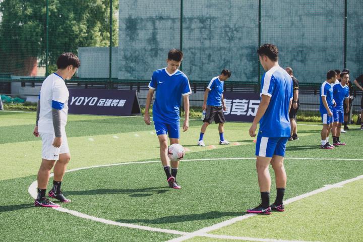 既然是线下体验会,唯有通过实战才能更好地认识并感受耐克全新Phantom GT足球鞋与Flight足球。本次活动以“前浪 vs 后浪”为主题,实际上并不是球场前辈与后辈之间的面对面对抗,而更像是一场以足球为主题的交流。两位70后的球场老将与90后与00后的球场后生们相聚一堂,以球会友,共同体验全新Nike Phantom GT足球鞋与Nike Flight足球。在实战体验环节开始前,参与活动的EZer被分为蓝队和白队,分别由两位“前浪”带领进行热身,为接下来的体验环节以及实战对抗做准备。两位足球“前浪”在热身活动时一板一眼的态度让“后浪”们了解到热身这个容易被人所忽略的环节对延长足球寿命的重要性。在热身结束后,针对Nike Phantom GT足球鞋所拥有的精准传控特性,本场线下体验活动特意设立了不同的体验项目来让到场参与活动的EZer体验这款全新战靴。在带球绕桩环节中,参与活动的EZer们可以感受带有摩擦纹理的鞋面所拥有的出色掌控性能以及全新设计的大底所拥有灵动特性。而在后面的任意球体验环节中,可以通过任意球射门来感受Phantom GT足球鞋在射门方面拥有的精准特性,同时也体验了Nike Flight足球更加平稳的飞行稳定特性。