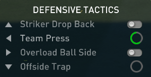 手动切换到“造越位”前压的球员 -允许手动切换到正在执行“越界陷阱”战术的球员。