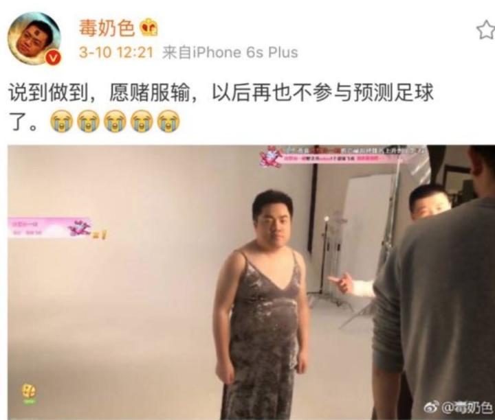 4.次回合赛前,黄旭东表示巴萨不可能逆转,并以女装作赌注。巴萨3-0领先后,卡瓦尼打入一球将比分扳为3-1,黄旭东再发微博:“巴萨怎么可能翻?神将卡瓦尼在此,哇哈哈哈”(巴萨6-1巴黎晋级,史称诺坎普奇迹)