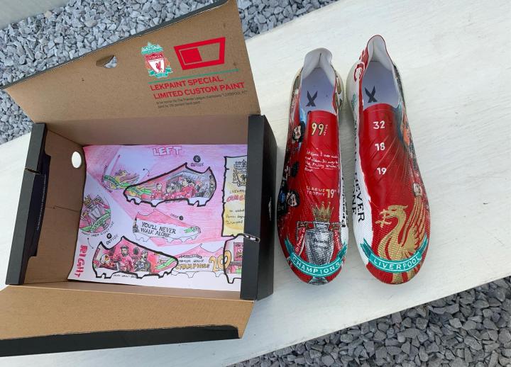 日前,泰国知名的球鞋定制喷绘厂家Lekpaint发布了他们的作品:利物浦英超冠军纪念款球鞋,100%手绘的精美图案铭刻着这支无敌之师的赫赫战功。