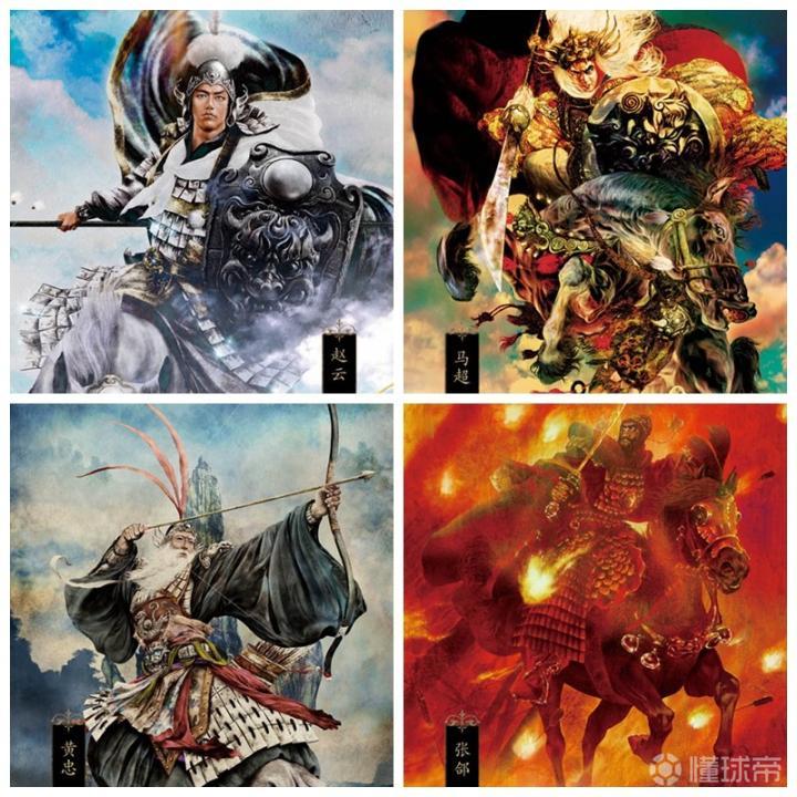 赵云(左上)、黄忠(左下)、马超(右上)、张郃(右下)