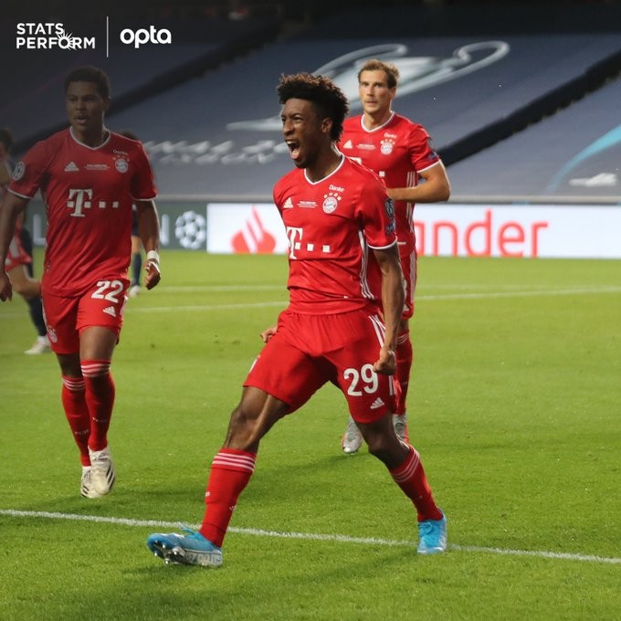 拜仁边锋金斯利-科曼在欧冠决赛中为球队打破僵局,凭借这粒进球,科曼成为了欧冠决赛历史上第9位完成破门的法国球员,而他们的对手正是法国球队巴黎圣日尔曼。在他之前的两位法国球员是本泽马和齐达内。