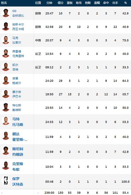 易边再战,鲍威尔两记转换进攻扣进+追身三分飚中连下7分,阿努诺比定点三分稳稳命中,范弗里特追身三分也有,猛龙下起三分雨迅速将分差扩大至23分。随后勒韦尔三分命中为篮网破荒,鲍威尔和伊巴卡分别再中两记三分,猛龙三分雨下个不停,带着29分领先优势进入末节。末节决战,篮网替补阵容手感不错,贾斯汀-安德森和切奥扎连续命中三分,猛龙不甘示弱由马特-托马斯回敬两记三分。猛龙一直手握20分左右的领先优势,随着时间一分一秒流逝,比赛失去悬念,进入练兵时间。最终,猛龙三人得分20+,以150-122轻取篮网,总比分4-0横扫晋级。