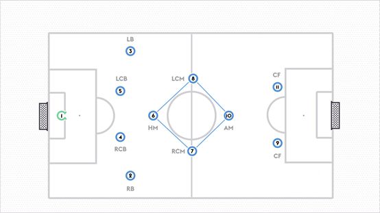 今天我们在这篇文章中,探讨4-4-2的其中一种变化菱形中场,以及各个位置的职责,我们现在开始: