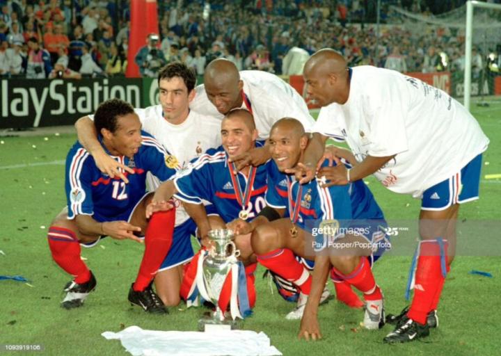2000年欧洲杯,亨利继续跟随无敌之师法国队出战,这次亨利的表现依旧出色,他又一次打入三球,其中最关键的是半决赛和葡萄牙队的进球帮助法国队扳平比分。决赛前夕,亨利前往意大利队训练营探班,看望了阔别一年的尤文图斯老队友,最终法国队在决赛又一次上演大逆转好戏,不过最终绝杀意大利的亨利的好搭档特雷泽盖。就这样,在短短两年内,亨利获得了世界杯和欧锦赛的冠军,当时他仅仅23岁。