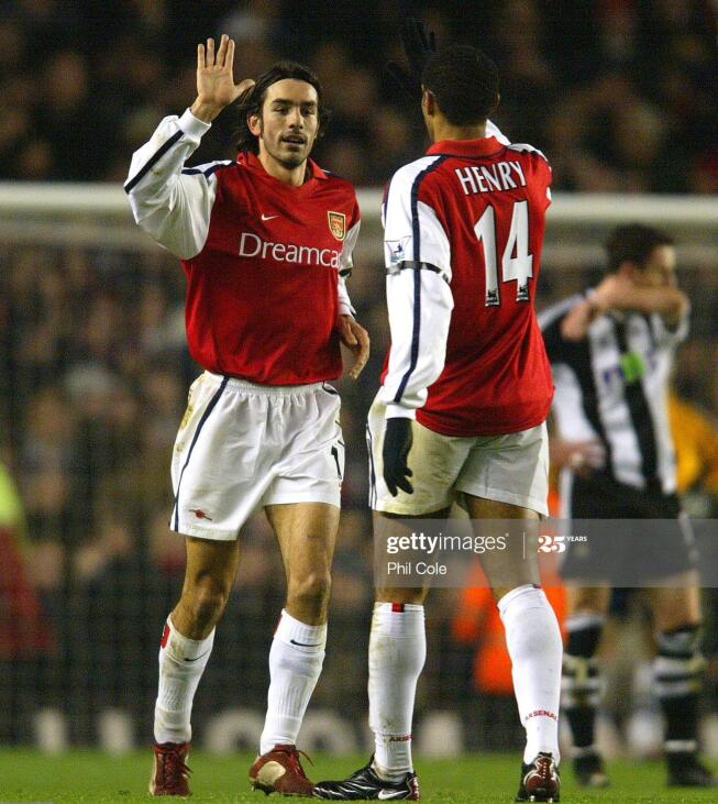 这让亨利更加自信,在当年的阿森纳,亨利还有两位良师益友,一位是老乡皮雷斯,另一位是老大哥博格坎普,他们对亨利帮助非常他,除了不断给亨利喂饼,亨利的技术也在这一时期有了更长足的进步。01-02赛季,亨利迎来了爆发,他在那个赛季打入24个进球,成为英超金靴,帮助阿森纳获得了联赛和足总杯的冠军。