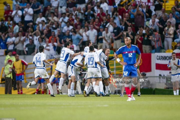 2004年葡萄牙欧锦赛,法国队志在卫冕,他们在小组赛表现也非常强势,战胜了英格兰和瑞士,亨利打入两球,小组第一让他们在四分之一决赛遇上并不被看好的希腊队,没想到当年的希腊异常顽强,不仅仅爆冷1比0击败了法国,还最终一黑到底上演希腊神话。但凭借在阿森纳的无敌表现,亨利在年底他当选法国足球先生,可惜在世界足球先生评选中又一次屈居第二。
