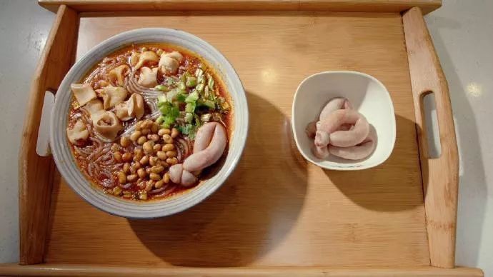 不过,肥肠终究要有肥肠味道,收拾的度也要有分寸。腾讯视频纪录片《早餐中国》里《四川成都肥肠粉:老成都的代表味》这期有个细节,一位大快朵颐肥肠粉的女顾客说,“撇得太干净了,反而觉得脱离了肥肠的味道。”