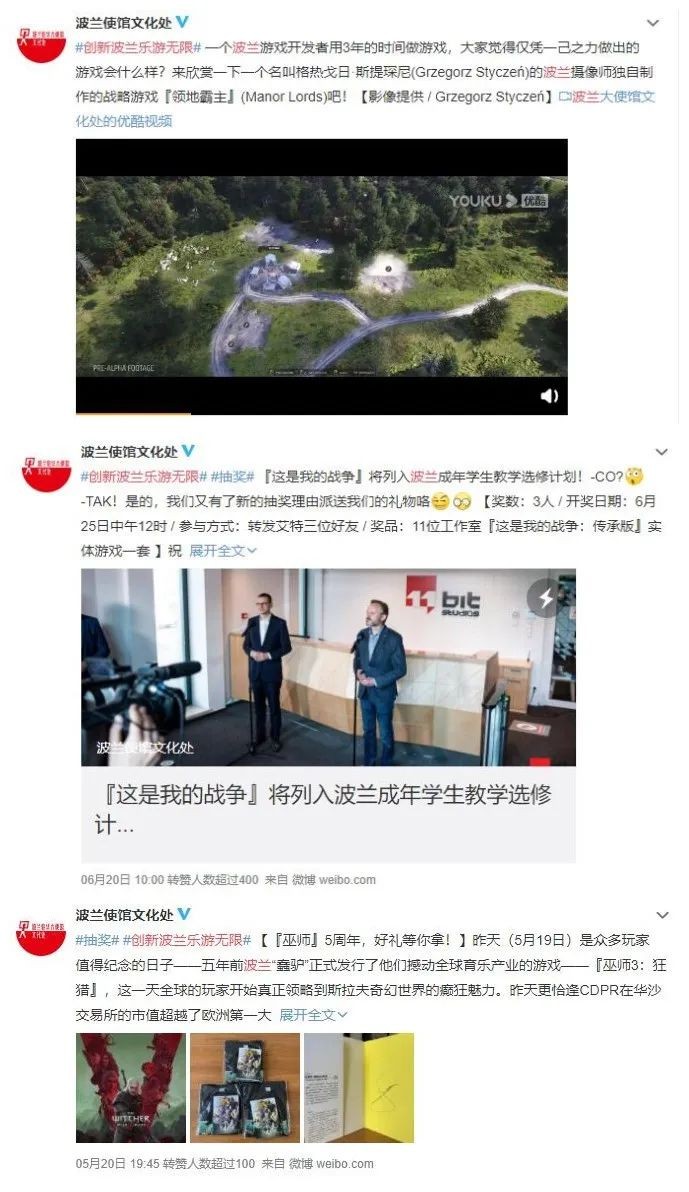 他们总理曾把游戏《巫师2》作为国礼送过奥巴马。在官方微博“波兰使馆文化处”那里,你不看名字只看内容的话,会完全以为这是一个游戏博主。
