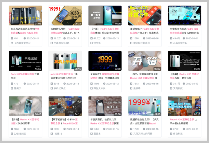 现在我想测评红米 K30 至尊纪念版,最低配的也要 1999,买不起,只能看着那些大的数码自媒体第一时间上手。而且做数码自媒体的人也知道,就算我们能第一时间买到货,那些大的数码自媒体发布会前很早就拿到了产品,发布会一结束就发布做好的作品,(时效性)我们根本抢不过他们。我们这行你要是第一时间拿不到产品,发相同内容很难有效果。